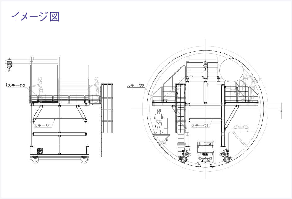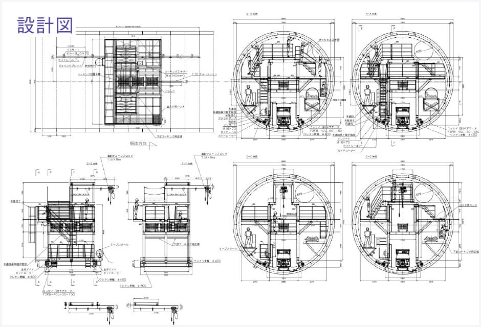 弊社は土木建設工事の中で、主にシールド工事の仮設機械設備においての計画設計をメインに計画設計業務を遂行しており、長年のシールド工事実績を基に培った技術力でご提案を行っております。